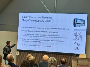 Vervolgens ging Prof. Matthias Verbeke (KU Leuven, campus Brugge) in op de rol van AI in moderne productieomgevingen. Hij besprak hoe bedrijven data kunnen inzetten om onderhoud te voorspellen, kwaliteit te verbeteren en processen te optimaliseren.